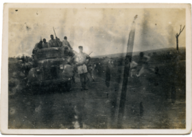 Un soir à l’étape, un de mes copains s’est trompé de poste. Il s’est trouvé devant un puits aux mains des Italiens, seul avec son peloton, sans eau et ne pouvant pas faire demi-tour. Il a mis en œuvre la tactique de Leclerc. Les Italiens ont cru qu’ils étaient très nombreux, d’autant plus qu’ils avaient appris quelques heures plus tôt, par radio, qu’il y avait une attaque des Français. Quand ils ont vu arriver mon copain, ils ont cru que c’était le début d’une colonne. Ils se sont rendus, (en laissant tout leur matériel) alors qu’il n’y avait qu’une trentaine de militaires, et cinq camions… seulement… Mon copain, qui était attendu d’un autre côté, est arrivé en retard à l’étape, mais avec des prisonniers italiens.