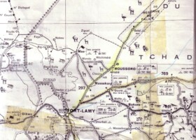 Fin novembre 1942, nous rejoignons une dernière fois Bangul pour faire définitivement mouvement vers le Tchad par Fort Archambault, Fort Lamy, Koro Toro et Faya Largeau, point de départ des opérations.