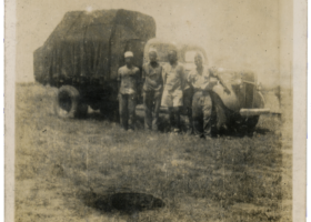 Moi, je m’occupais de l’entretien, des réparations et je suis même arrivé Tripoli fin décembre 42, avec un camion supplémentaire. J’ai dépanné en dernière extrémité, un camion venant d’une autre section avec deux survivants sur cinq, dont Paul Theetten, d’Armentières. Les autres se trouvaient encore dans le camion, décédés, ils n’avaient pas survécu au manque d’eau. Plus tard j’ai revu régulièrement Paul dans le Nord. Son père était marchand de charbon à Armentières. II était l’ami de Joseph Frys et fut délégué à L’Union Française, puis devint député d’Armentières.